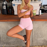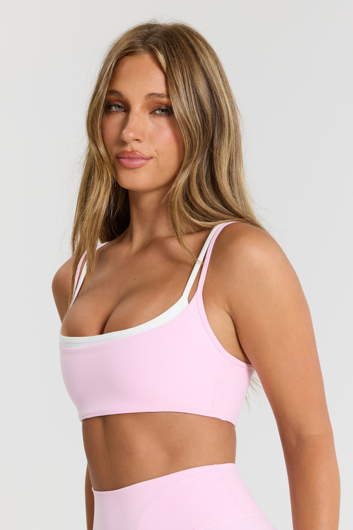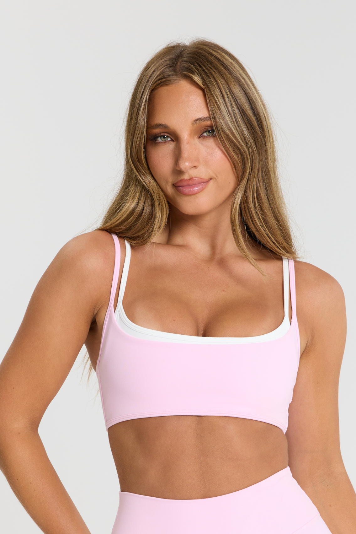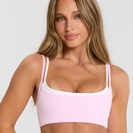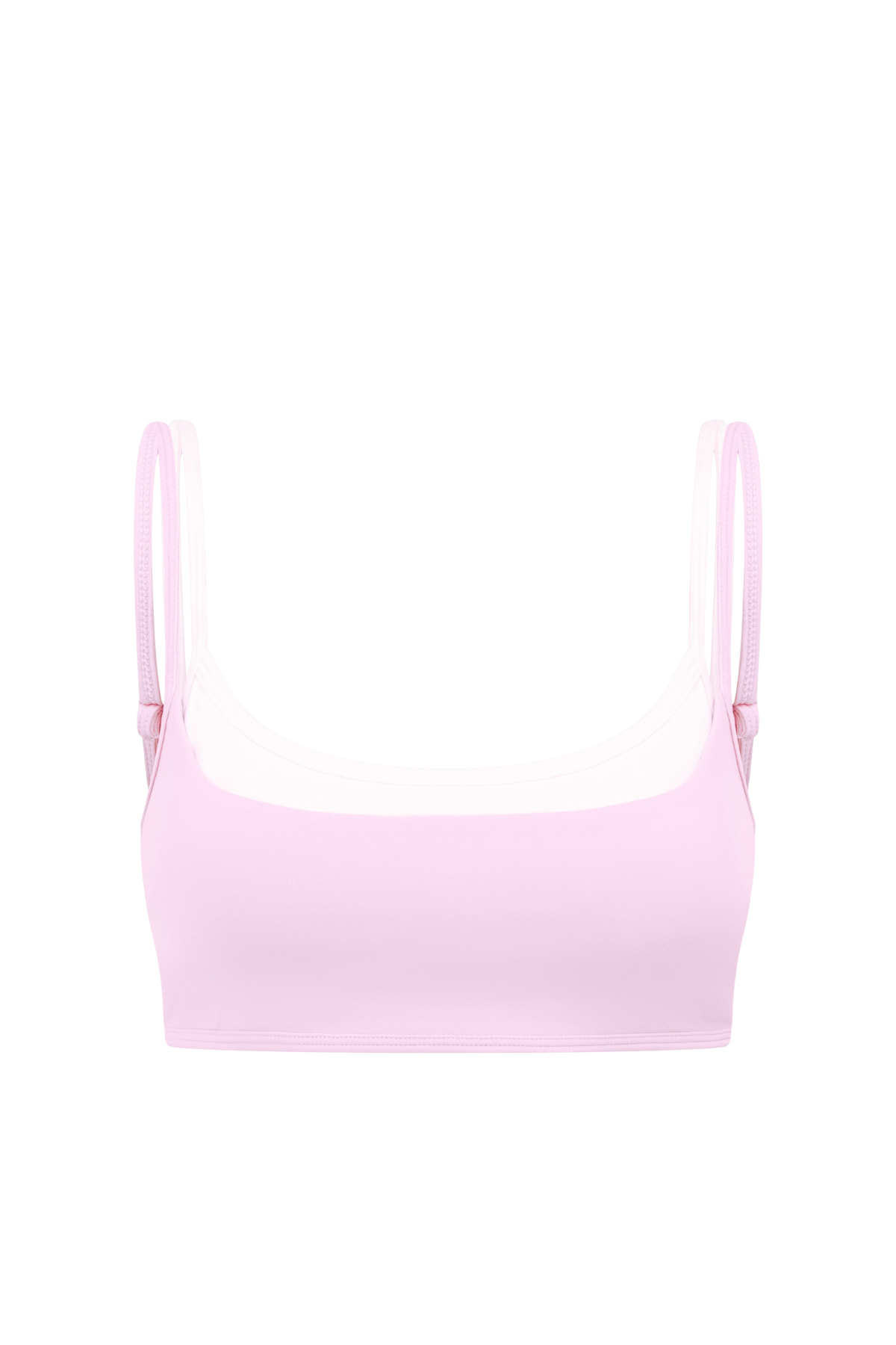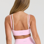 The Layer Crop in Strawberry. This medium-support crop features a flattering double layer. This crop has removable padding and adjustable straps, offering medium-coverage.