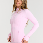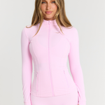 Our Zip Jacket in Strawberry is the form-fitting, sculpting layer you need in your active collection. This full-length jacket features zip pockets, thumbholes and an inner pocket for your phone.