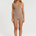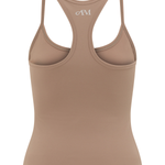 Ari has layered the Strawberry Thin Strap Racerback Tank underneath the Latte Thin Strap Racerback Tank for a layered look.