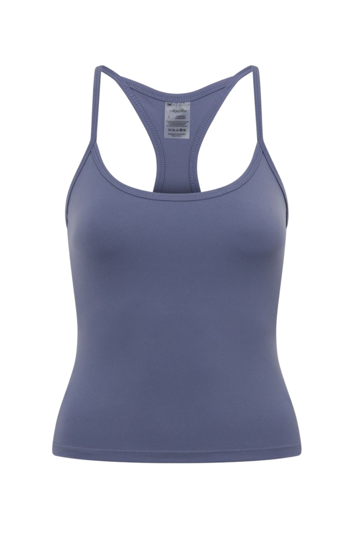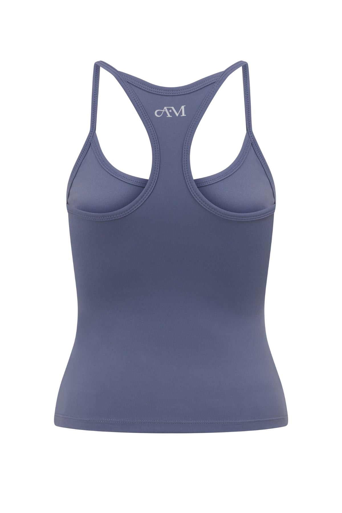 Our Thin Strap Racerback Tank in Steel features a minimal, thin strap with a racerback design and sculpting fit through. Wear on it's own or layer with our Micro Halter Crop. Mix with Matcha or Sky or match with Steel.