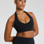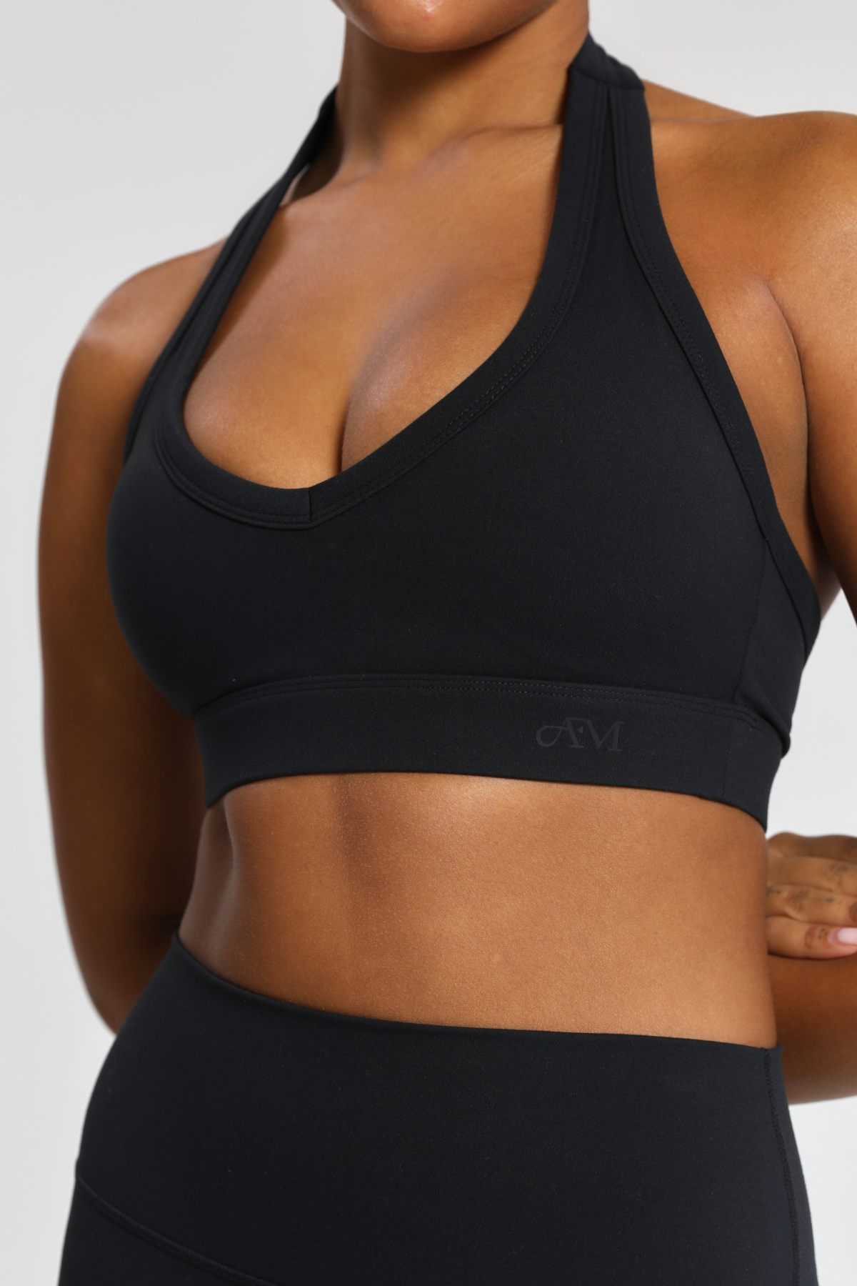 Our classic halter crop style in our newest black colourway. Made from our buttery soft activewear fabric, designed for movement.