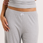Our Ribbed PJs are a summer essential - thoughtfully crafted with you in mind. Our Ribbed PJ fabrication is soft, stretchy and breathable - perfect for days at home or a comfy sleep. Our Ribbed PJ Pant in Grey features a stretchy elastic waist and a white bow detail.