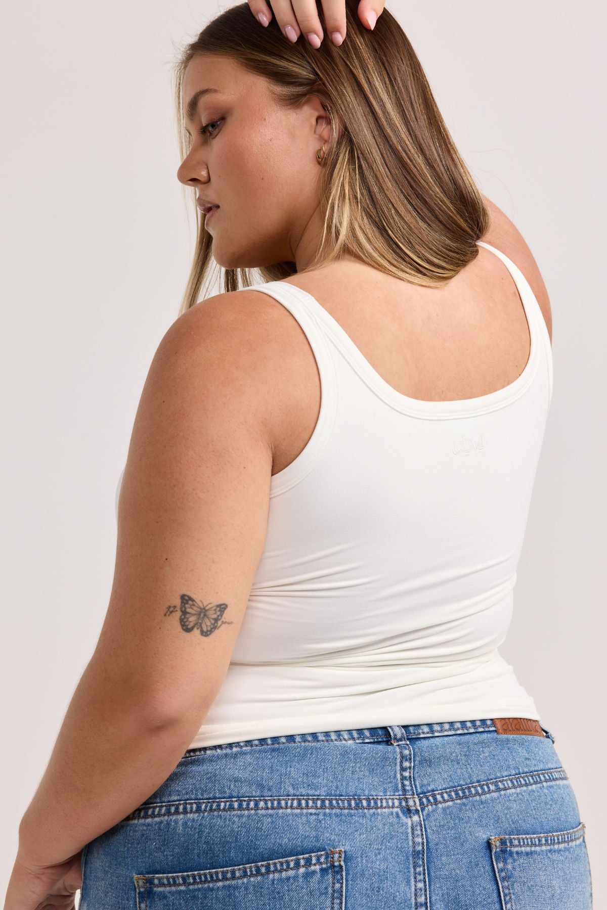 Our tank is viral for a reason. Double lined for a flattering, sculpted fit and carefully crafted with a buttery soft fabrication. Dress it up or down - wear it on its own or layer - our tank is a wardrobe essential.