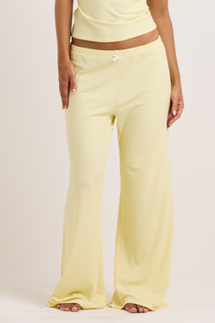 Our Ribbed PJs are a summer essential - thoughtfully crafted with you in mind. Our Ribbed PJ fabrication is soft, stretchy and breathable - perfect for days at home or a comfy sleep. Our Ribbed PJ Nightie in Yellow features adjustable straps with a lace trim on the chest and bow detail.