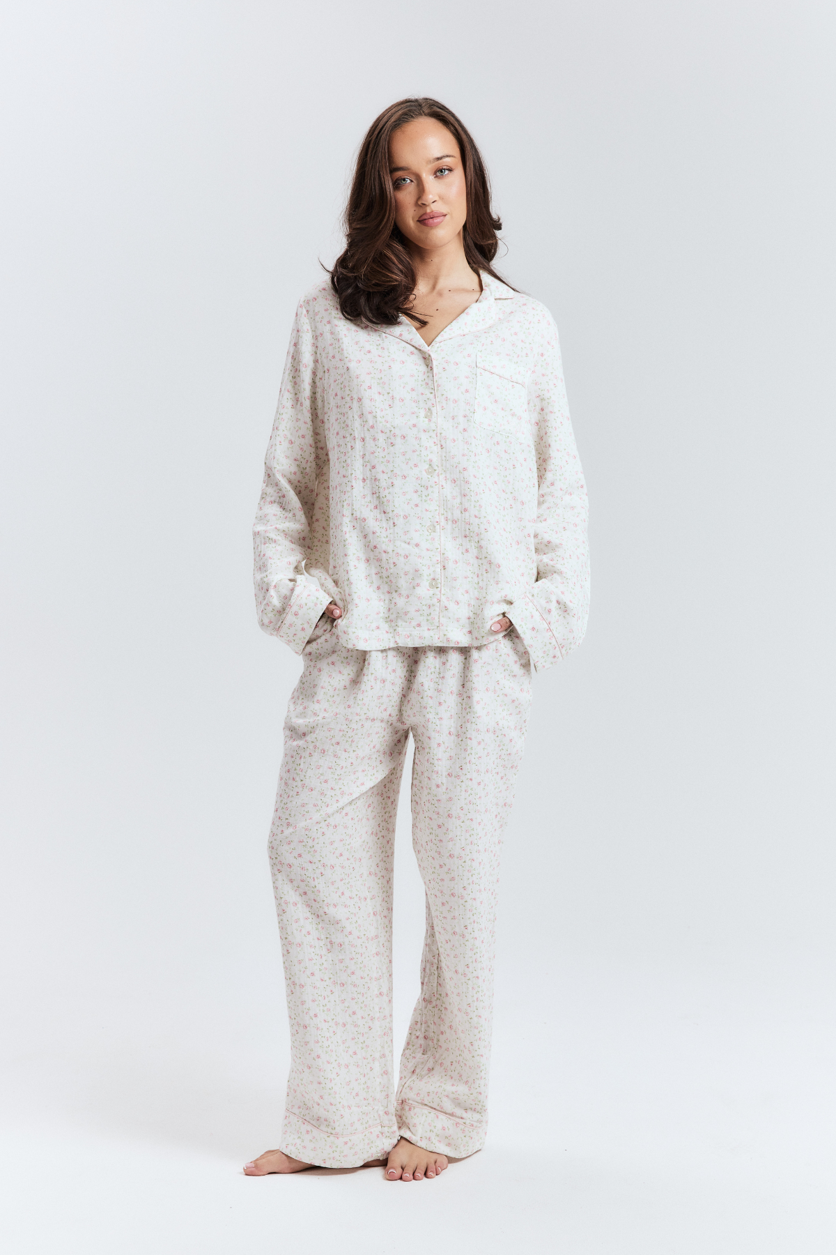 100% cotton, long sleeve, comfy pyjamas in our classic pink floral pyjama print.